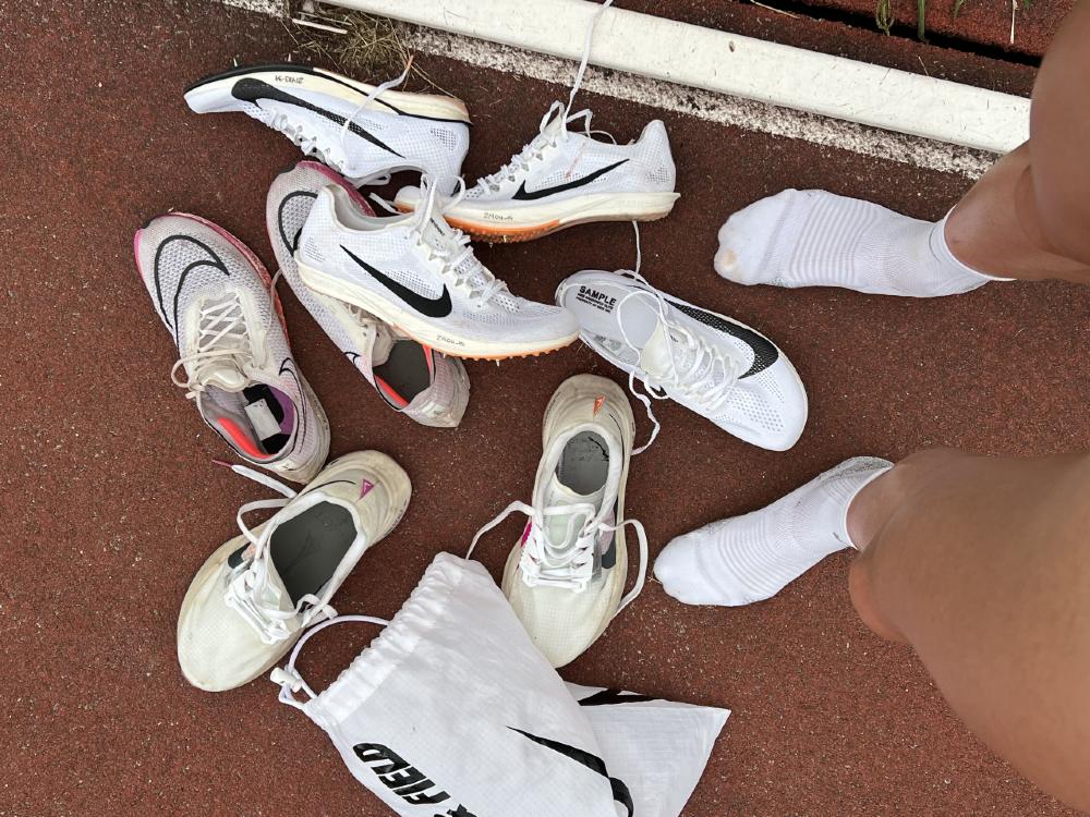J’habitue ma mécanique et ma musculature à ce qui se rapproche le plus des pointes. Je porte les Streak 1 : du ZoomX mais sans carbone. Et plus la paire vieillit, plus je l’aime : j’adore quand la semelle se tasse et que je sens de mieux en mieux le sol.